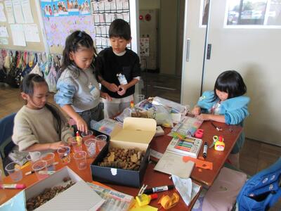 11月28日に行われたニコニコ富士見祭で、生活科「きせつとなかよし・あき」で学習した内容をもとに、秋の遊びのお店を開きました。