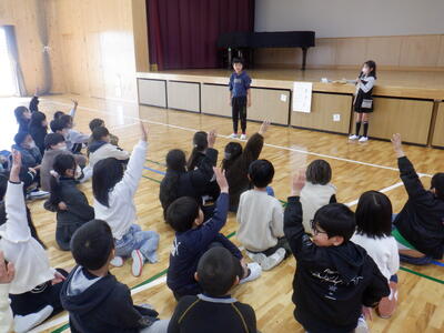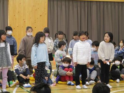 節分に合わせて学年集会を開きました。司会進行、発表、合奏等こどもたちが運営しました。2年生に向けて、よいステップとなりました。