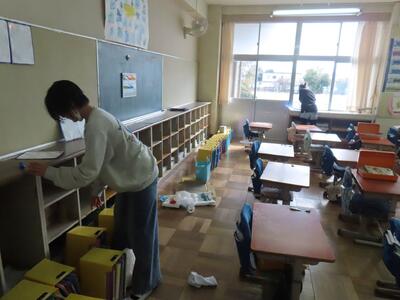 3月3日(火)、6年生が気持ちよく卒業するために、学校を代表して5年生が会場の準備をしました。