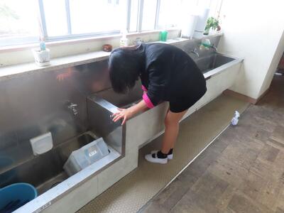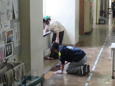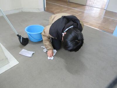 フロアの乾拭きから真剣に取組み、イスを出したり水拭きをしたりと、意欲的に取り組んでいました。
