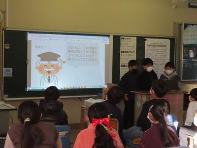 1月17日(土)に、4年生は、これまで学んだ防災について、学校のこどもたち、保護者・地域の方に伝えました。震度や防災リュックについてスライドでまとめたり、人形劇をしたりして分かりやすく地震について説明していました。説明だけではなく、体験して欲しいという思いから、段ボールベットや、揺れ体験ができる施設を作成するグループもありました。こどもたちの思いが表れたよい学習発表会になったと思います。